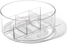 BINO Plastic Round Turntable Organizer with 5 Compartments - Clear | Spinning Divided Turntable Container | Rotating Organizer Storage for Bottle Condiments Fridge Kitchen Counter Pantry Bathroom