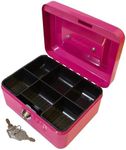 1x Red 20.5cm Metal Cash Box - Lockable Metal Petty Coin Notes Money Key Lock Safe Safety Storage Tin - By Ashley