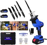 Cordless Reciprocating Saw 21V Electric Sabre Saw, Variable Speed Saw, 4 PCS Saw Blades, Blade Stroke 7/8 ”, Max Cutting Depth 2.6”, Ideal for Wood, PVC and Metal Cutting (w/2 Li-Ion Batteries)
