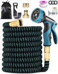 Flexi Hose Upgraded Expandable Garden Hose Pipe Including 8 Function Spray Gun Nozzle - Extra Strength with 2 cm Solid Brass Fittings - No-Kink Flexible Garden Hoses (Blue/Black 15 Metres)
